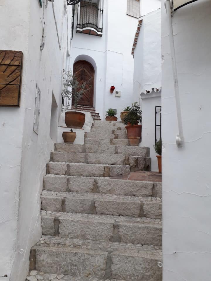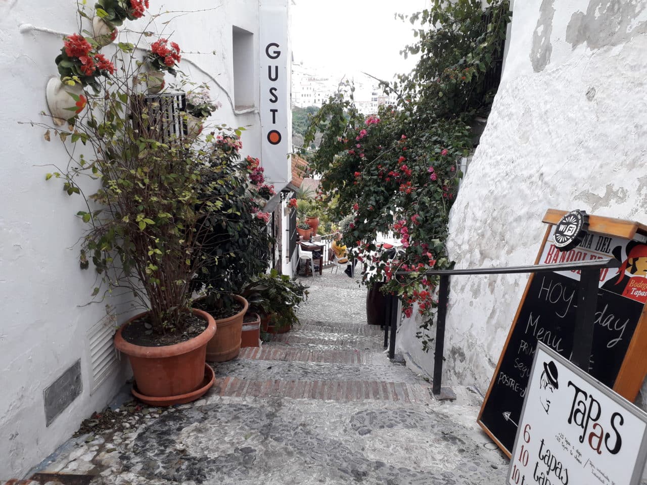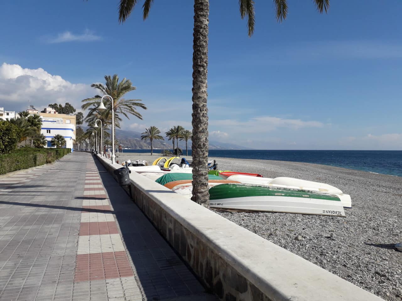 Nous poursuivons notre route jusqu’à Castell de Ferro un village d’Andalousie situé au bord de mer. Le beau temps nous accompagne toujours, l’aire de camping car est très bien avec accès direct à la mer. Nous restons là pour une semaine et profitons avec notre petite voiture de visiter le village de Frigiliana un des plus beaux villages blancs d’Andalousie. De petites rues étroites qui serpentent entre les maisons blanchies à la chaux, un paysage très agréable pour un mois de janvier; des arbres en fleurs partout. Puis nous visitons Gualchos, nous avons croisé très peu de monde, à part quelques chiens et chat errants. un peu plus haut des abricotiers en fleurs. Puis nous avons passé une journée à Grenade, difficile de tout voir mais l’essentiel est là, l’Alhambra somptueux et les petites rues de la vieille ville.