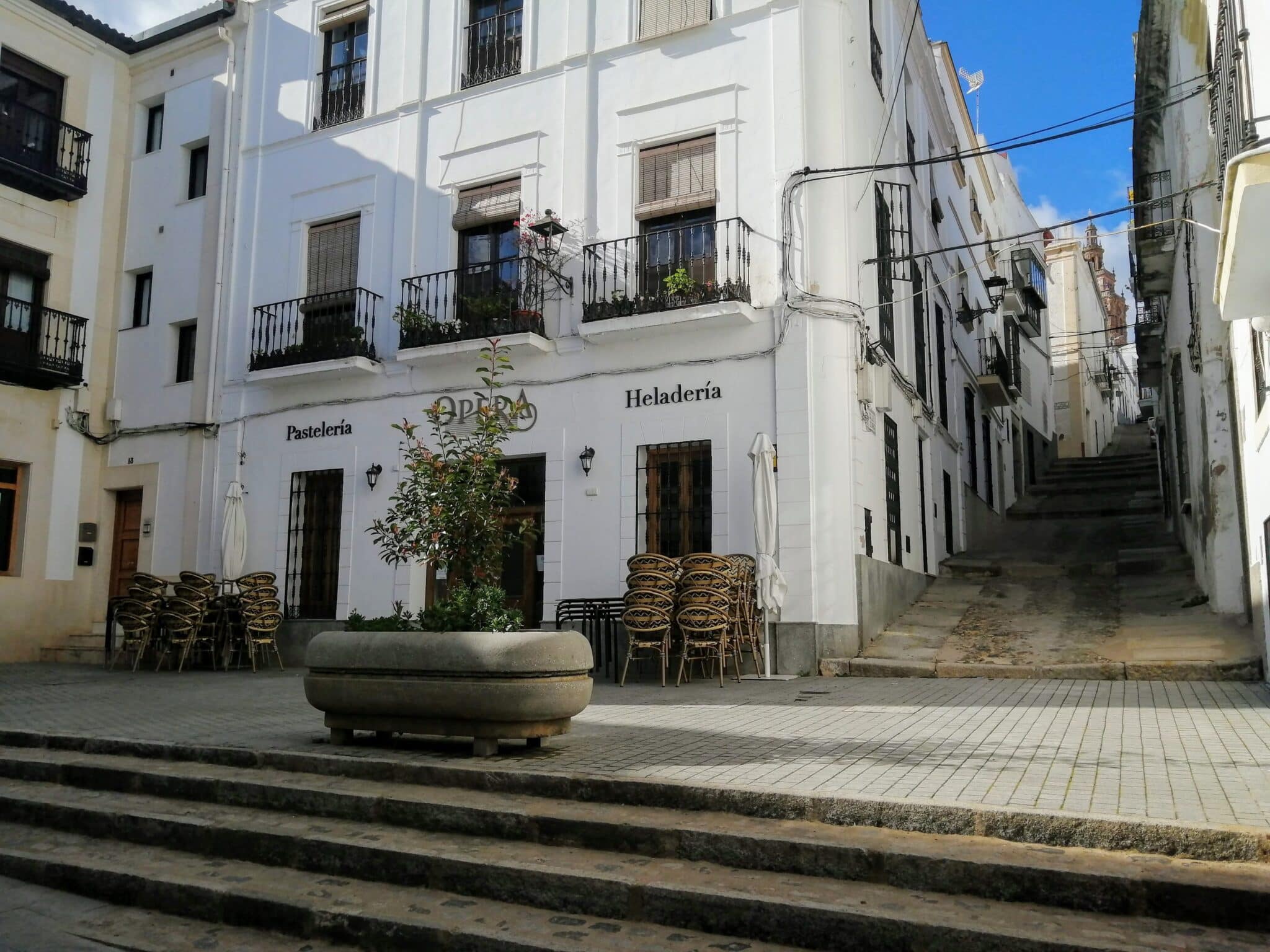 Une curiosité locale : le clocher de l'église Santa Dionisio penche légèrement, ce qui ne manque pas d'amuser les visiteurs. Flânez sans hâte dans les cours intérieures des maisons blanches, dégustez un verre de local dans une tasca discrète, et savourez l'atmosphère tranquille typique des villages d'Estrémadure espagnole.