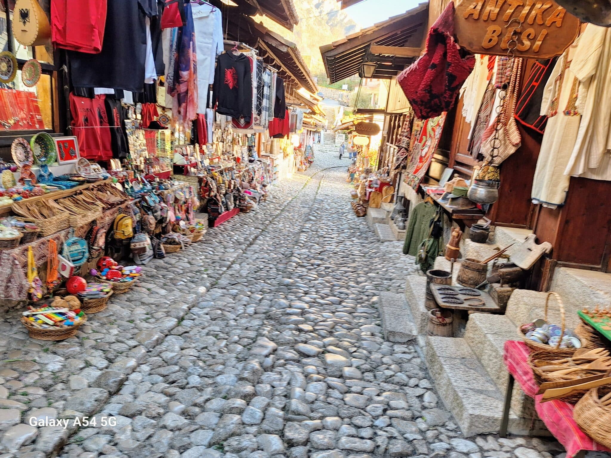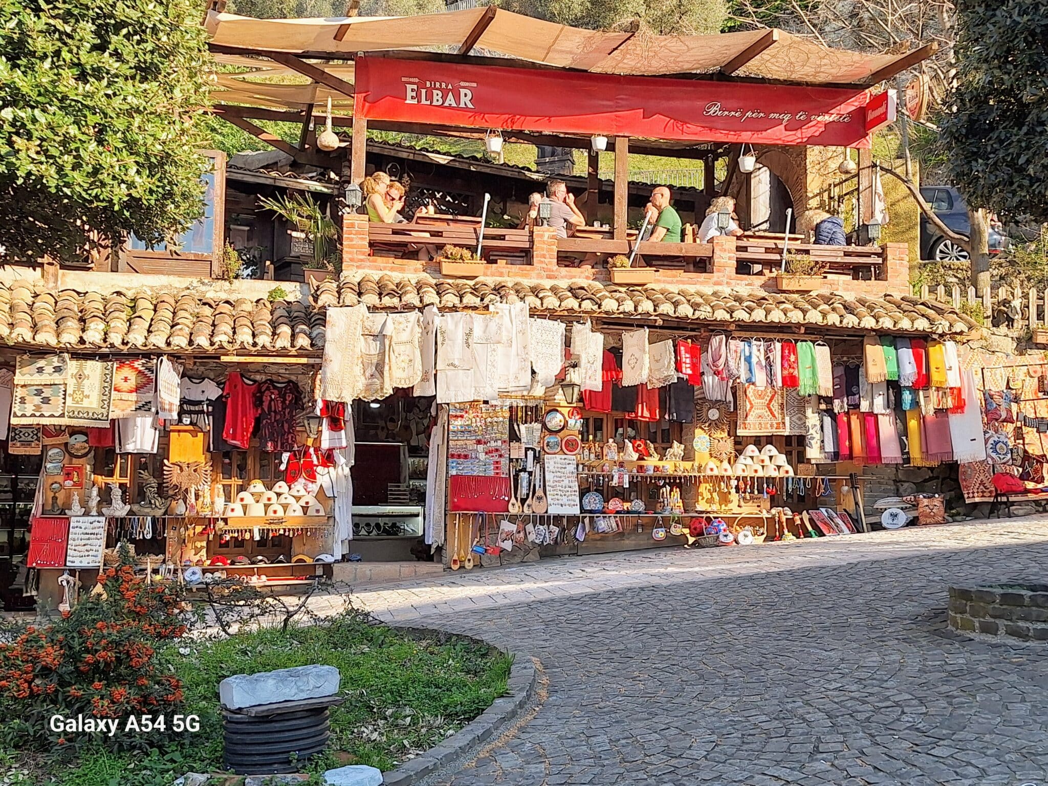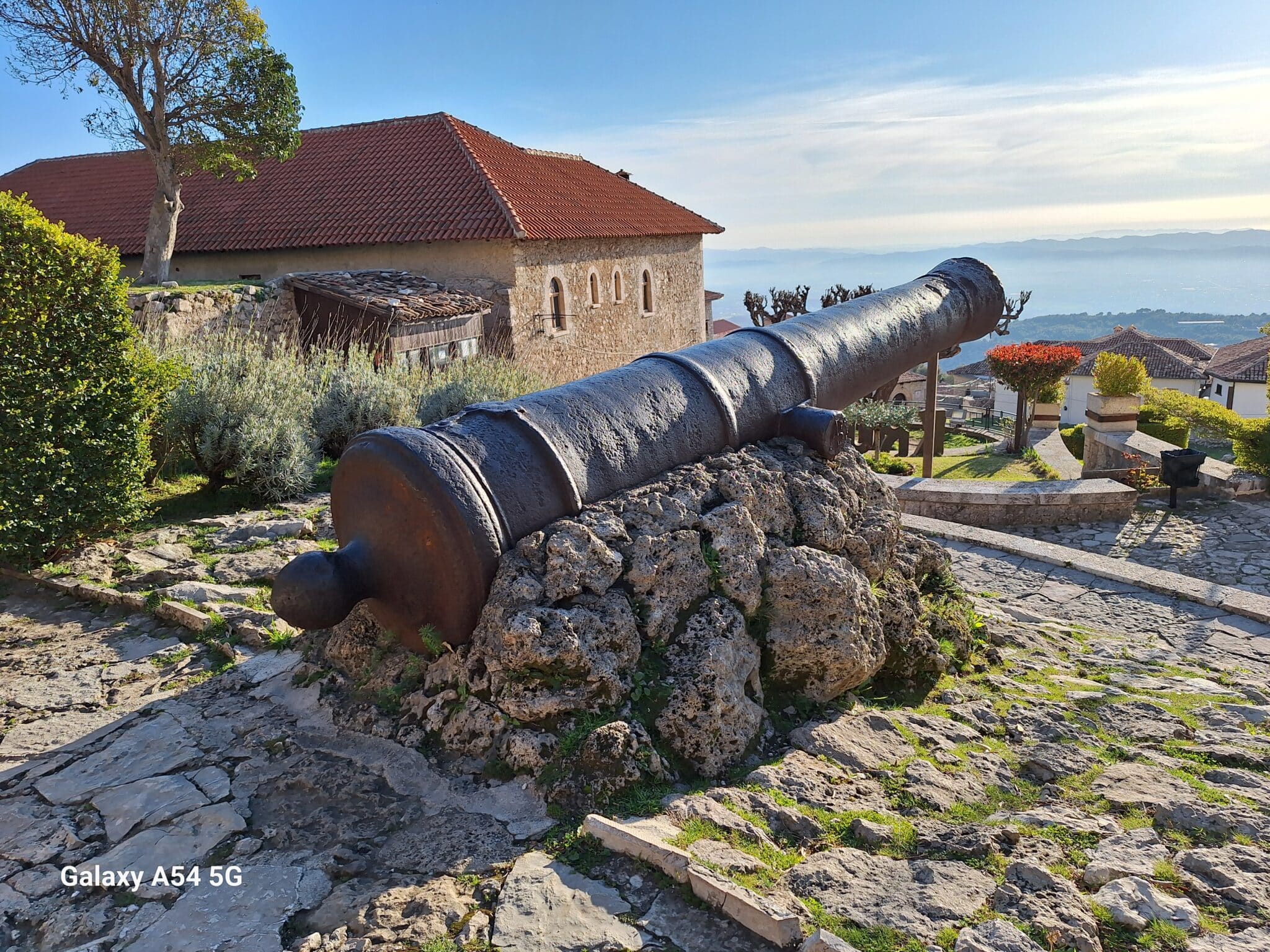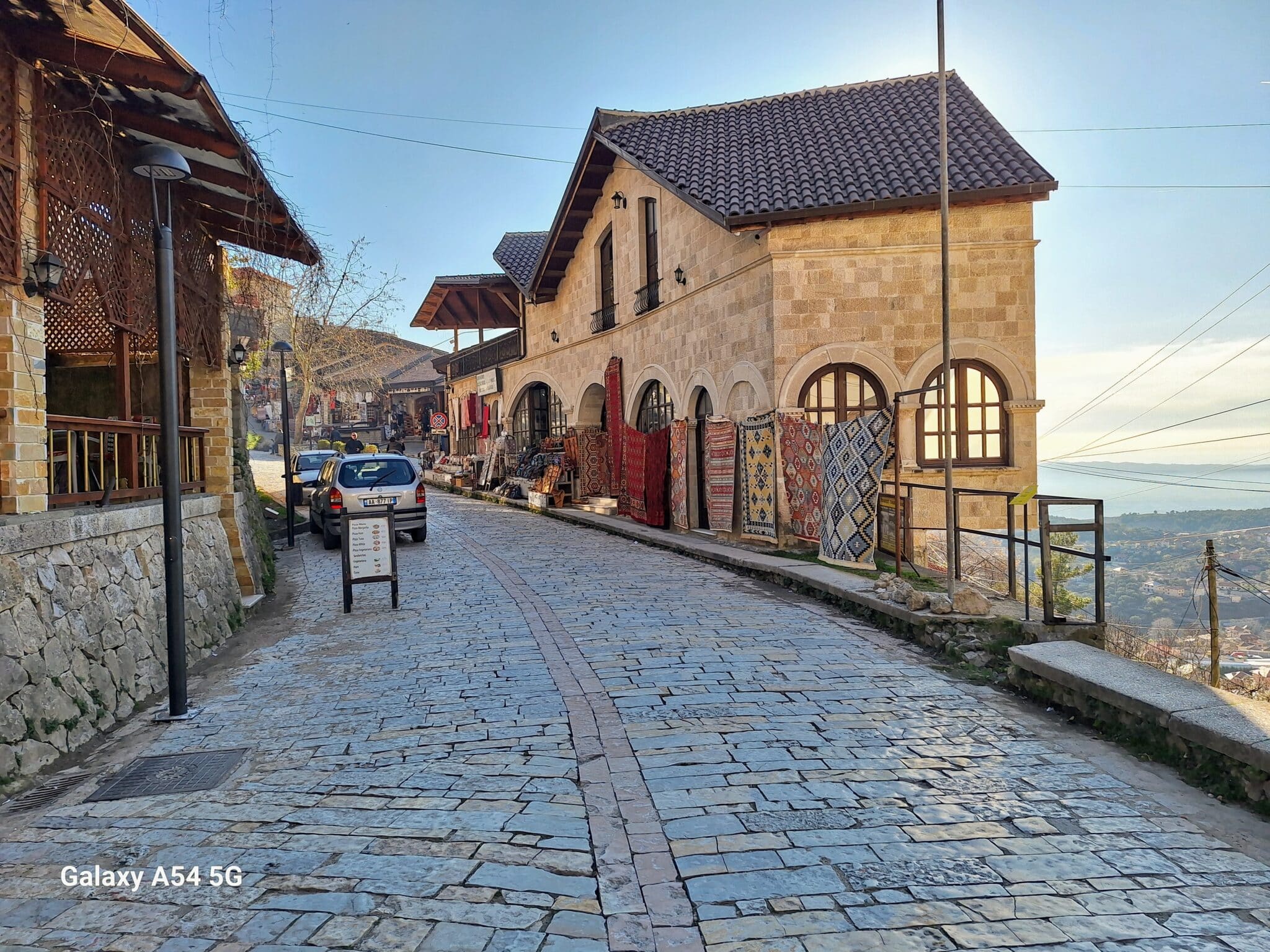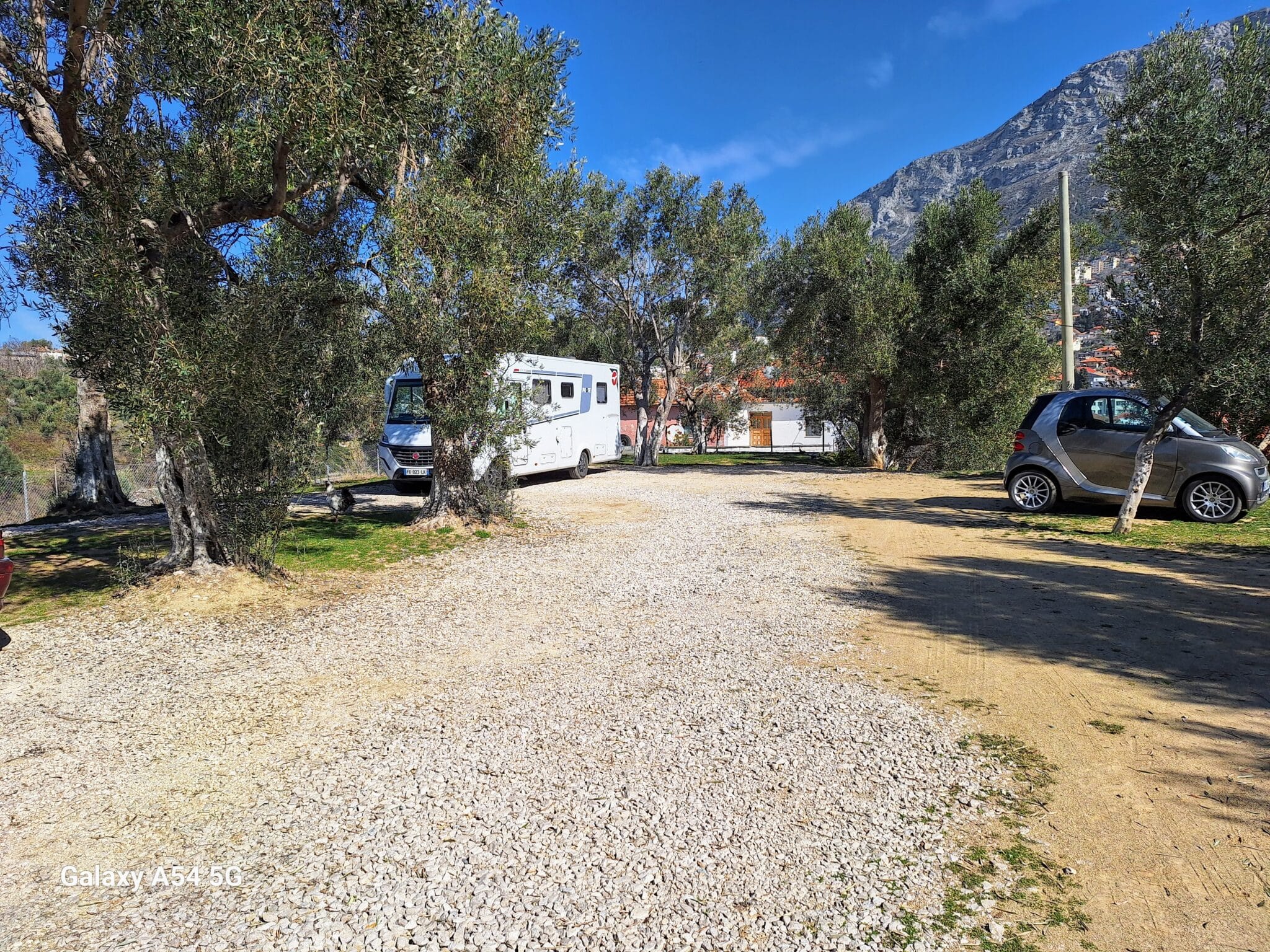 On poursuit notre découverte de l’Albanie et on s’arrête 3 jours à Krujë au camping kruja vista au milieu des oliviers. Un endroit sympathique avec une belle vue et un très bon accueil. Nous profitons de faire notre lessive puis nous partons à la découverte de cette petite ville à flan de colline. Nous allons jusqu’au château ( sans visiter l’intérieur , pas possible avec notre petit chien) promenade dans les jardins puis un tour au bazar qui est la principale attraction pour les touristes . Le lendemain nous décidons d’aller au sommet de la crête par une route sinueuse et impressionnante. Au sommet une vue à couper le souffle, nous n’osons pas trop s’approcher du bord , cela nous donne le vertige🤪