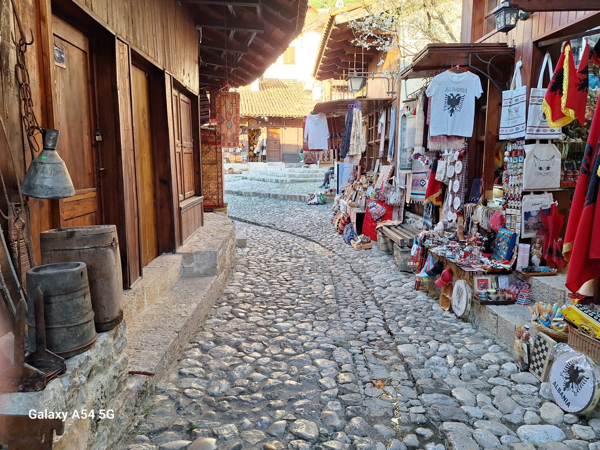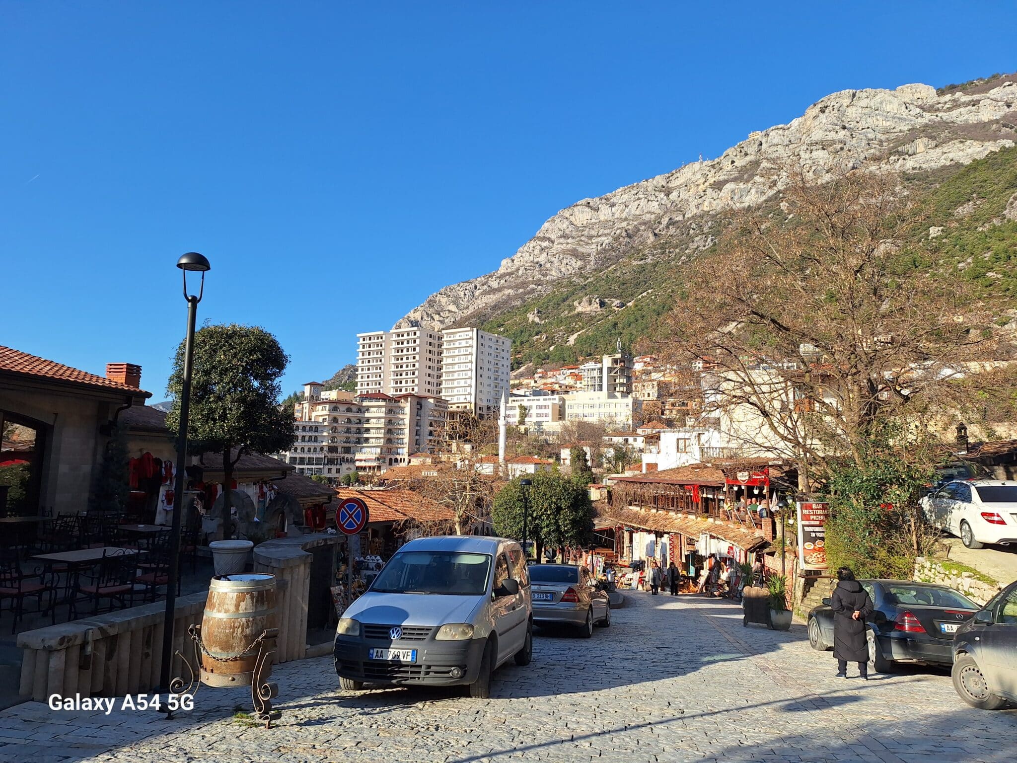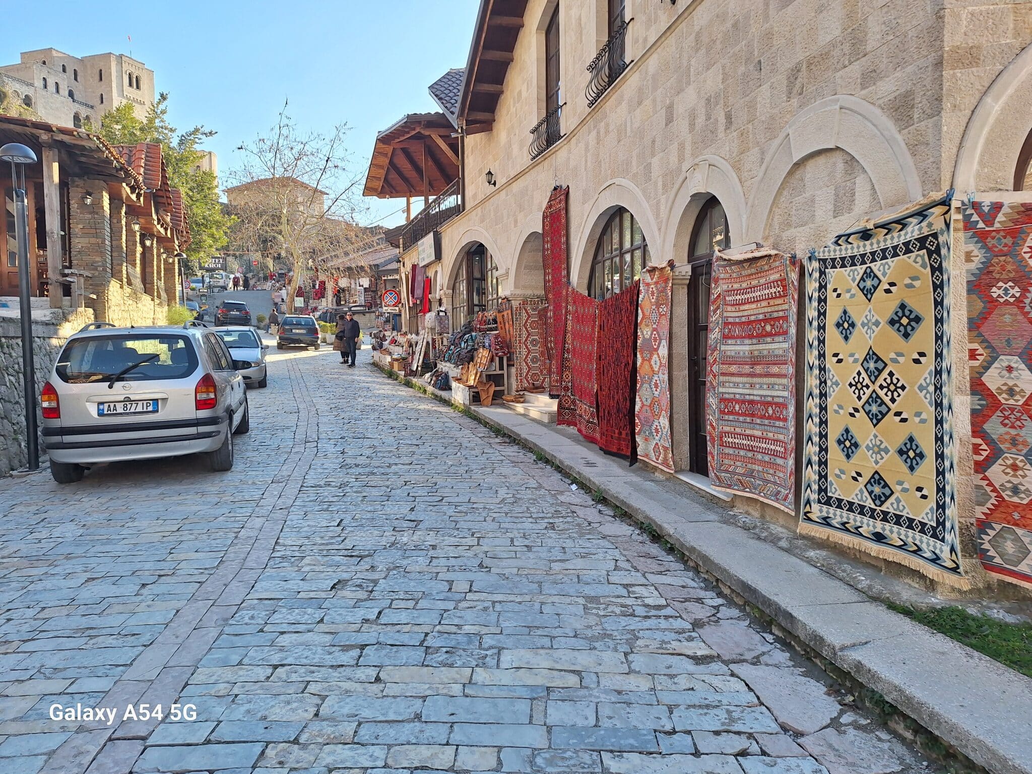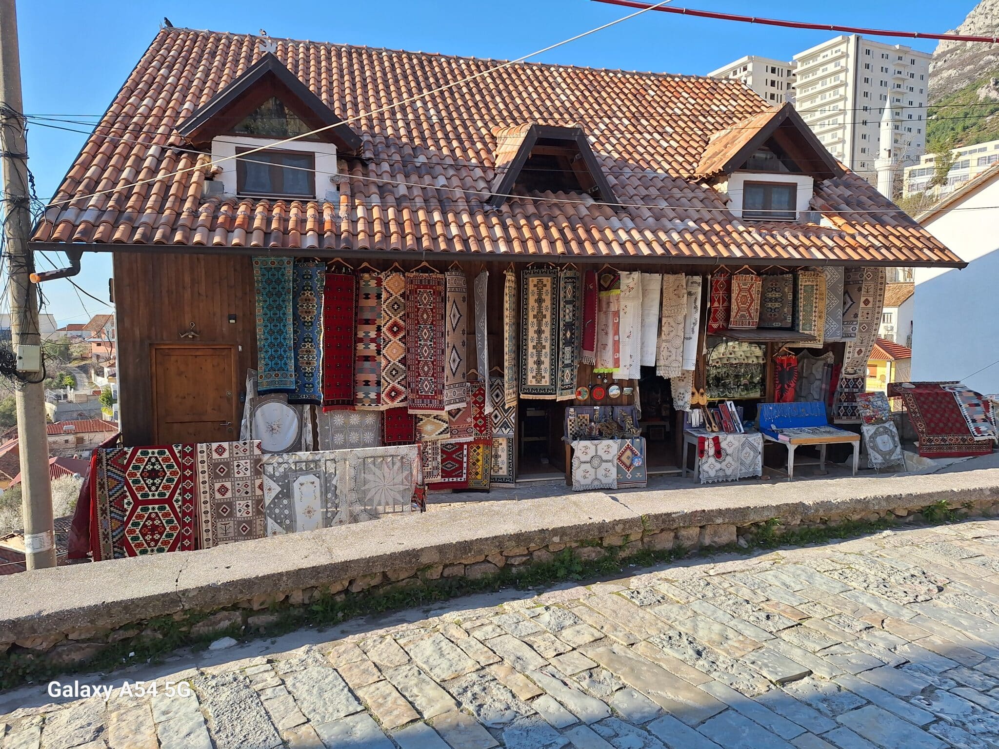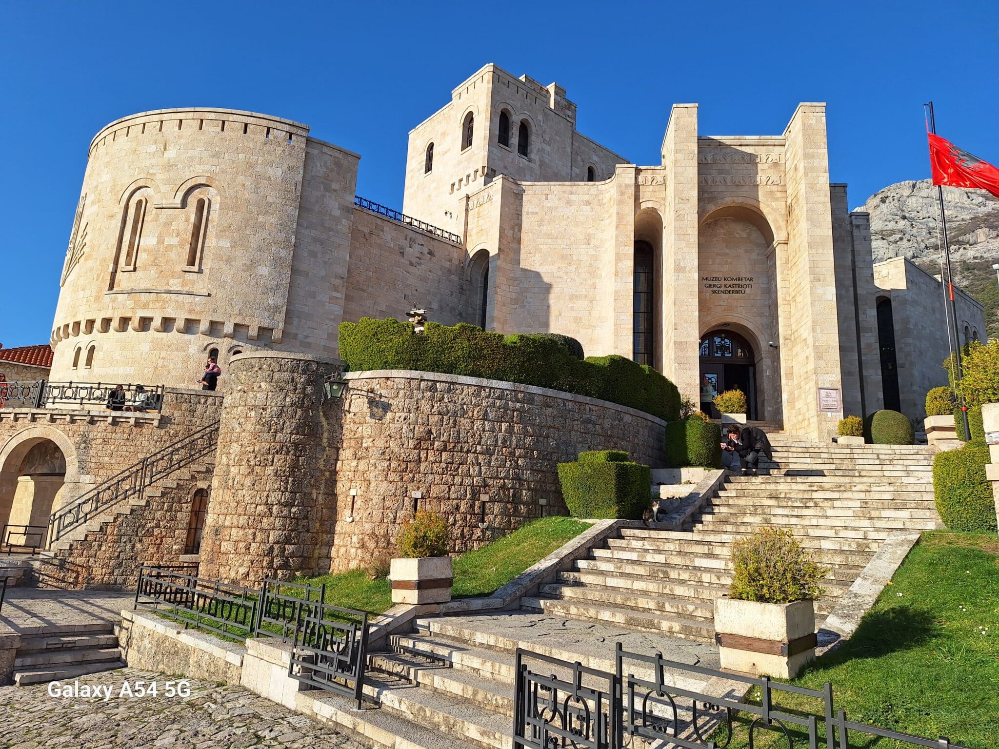On poursuit notre découverte de l’Albanie et on s’arrête 3 jours à Krujë au camping kruja vista au milieu des oliviers. Un endroit sympathique avec une belle vue et un très bon accueil. Nous profitons de faire notre lessive puis nous partons à la découverte de cette petite ville à flan de colline. Nous allons jusqu’au château ( sans visiter l’intérieur , pas possible avec notre petit chien) promenade dans les jardins puis un tour au bazar qui est la principale attraction pour les touristes . Le lendemain nous décidons d’aller au sommet de la crête par une route sinueuse et impressionnante. Au sommet une vue à couper le souffle, nous n’osons pas trop s’approcher du bord , cela nous donne le vertige🤪