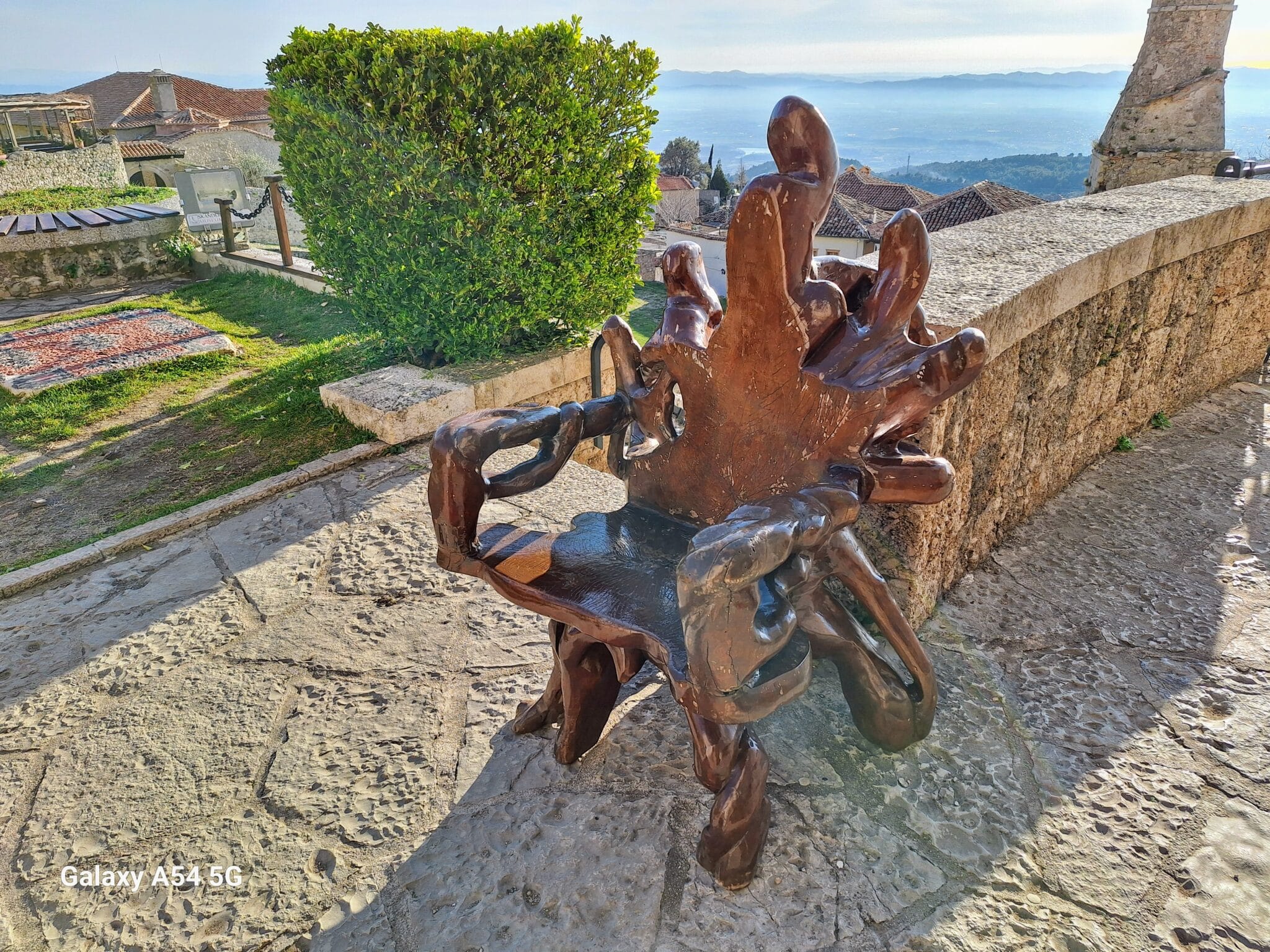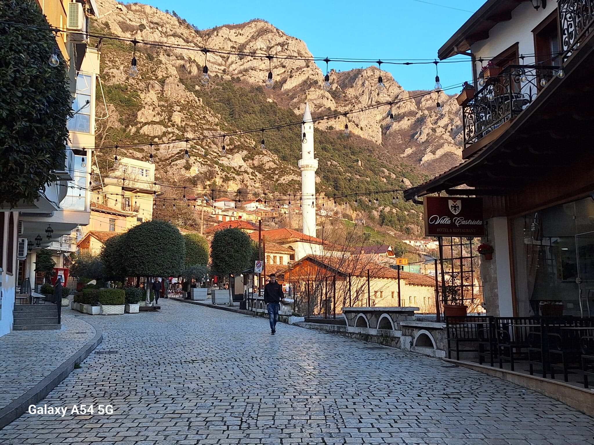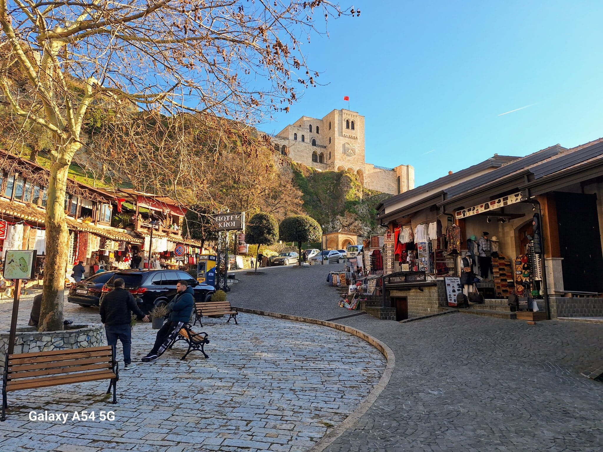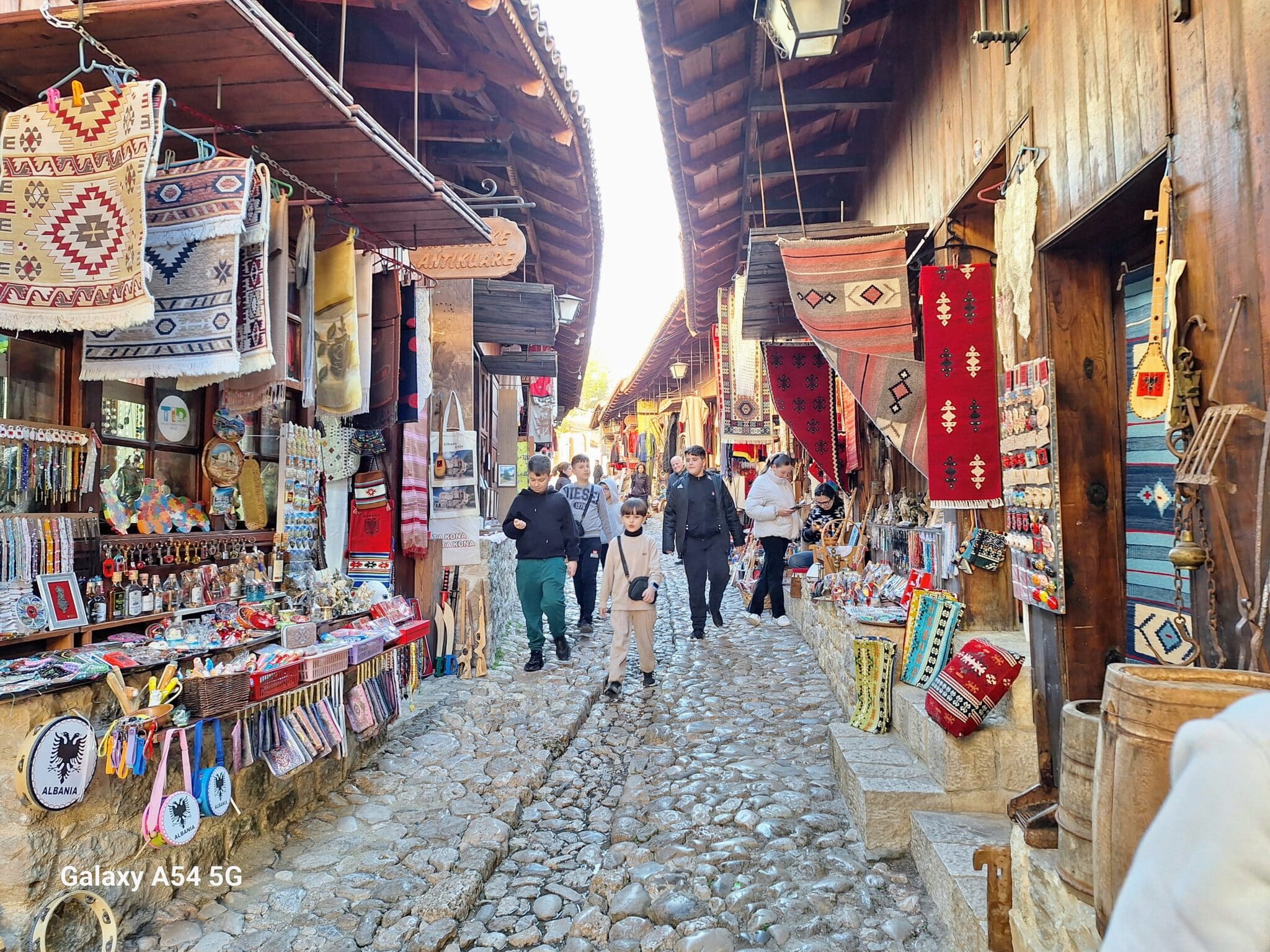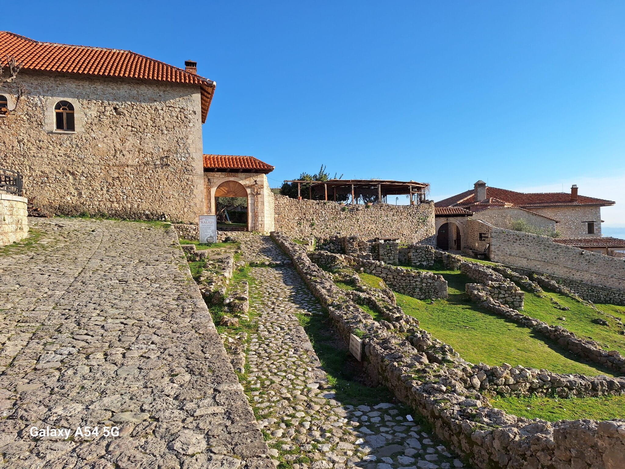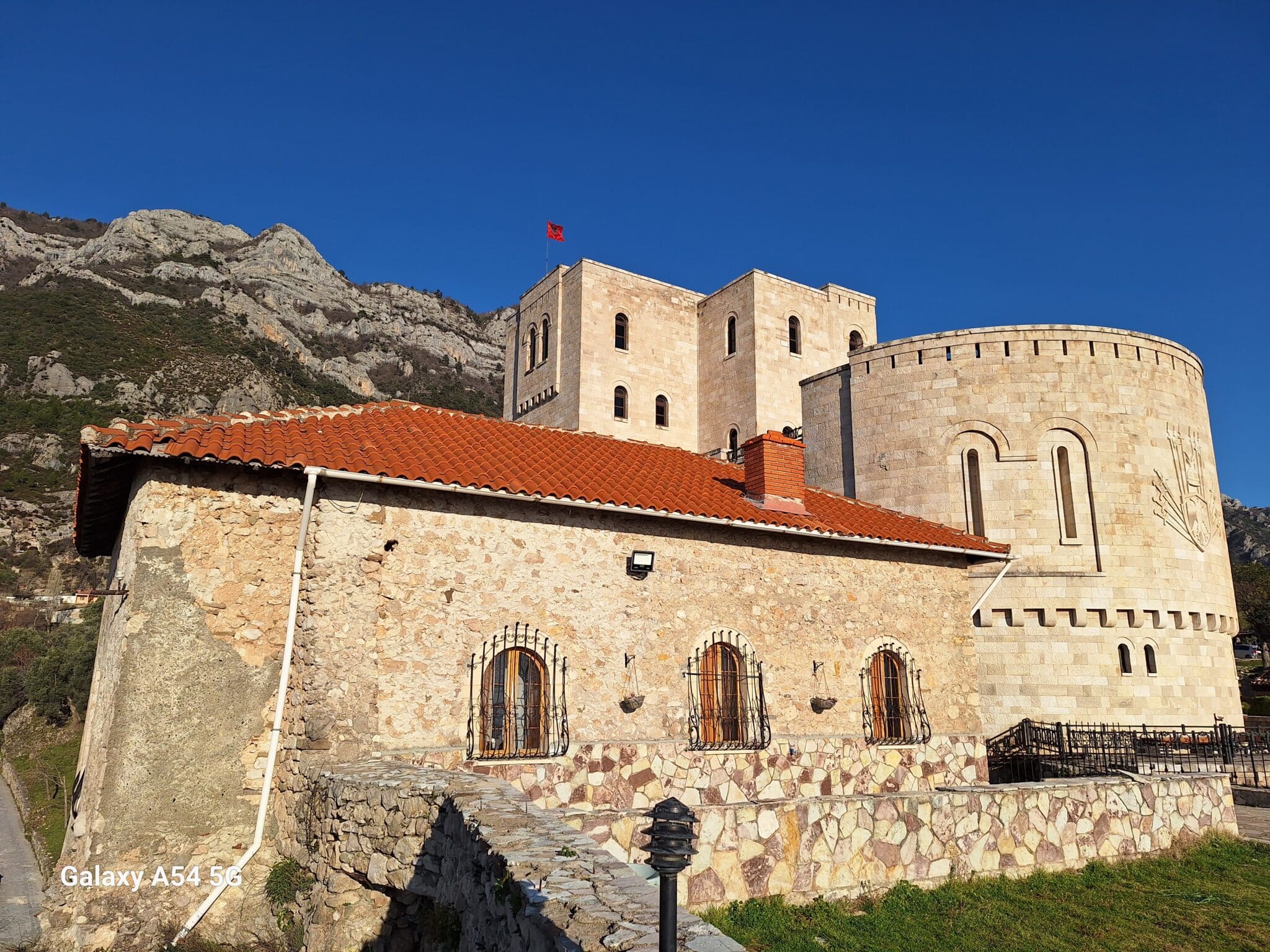 On poursuit notre découverte de l’Albanie et on s’arrête 3 jours à Krujë au camping kruja vista au milieu des oliviers. Un endroit sympathique avec une belle vue et un très bon accueil. Nous profitons de faire notre lessive puis nous partons à la découverte de cette petite ville à flan de colline. Nous allons jusqu’au château ( sans visiter l’intérieur , pas possible avec notre petit chien) promenade dans les jardins puis un tour au bazar qui est la principale attraction pour les touristes . Le lendemain nous décidons d’aller au sommet de la crête par une route sinueuse et impressionnante. Au sommet une vue à couper le souffle, nous n’osons pas trop s’approcher du bord , cela nous donne le vertige🤪