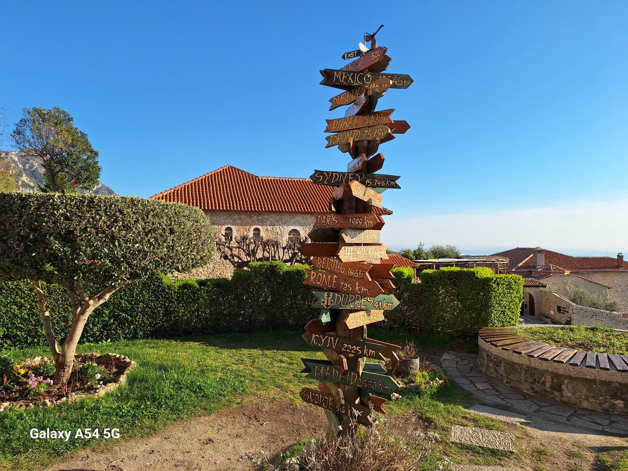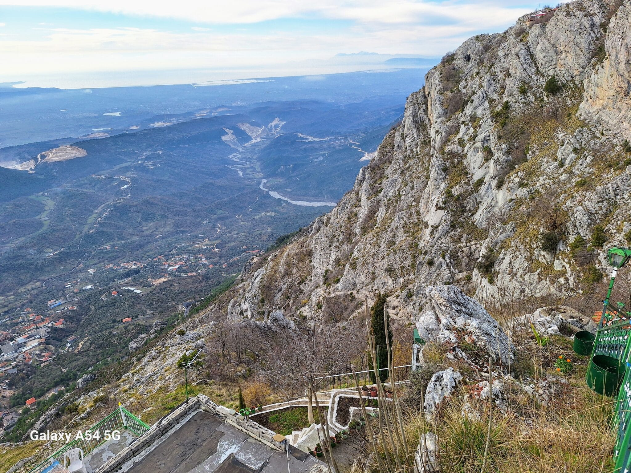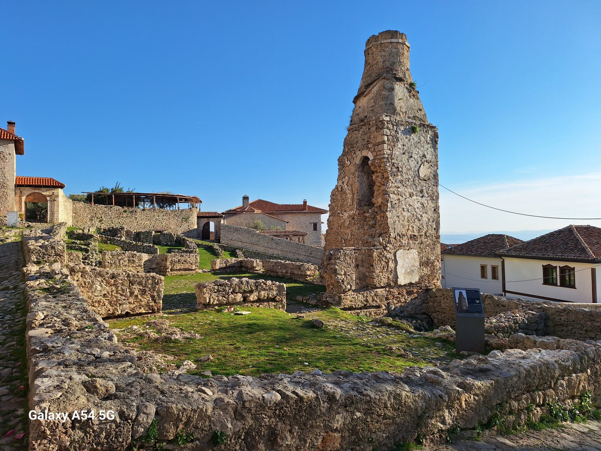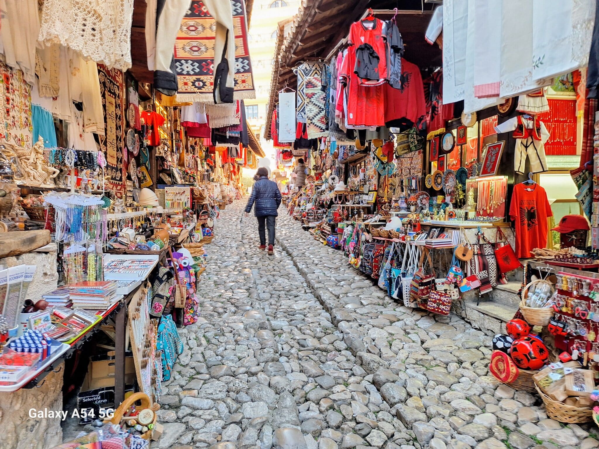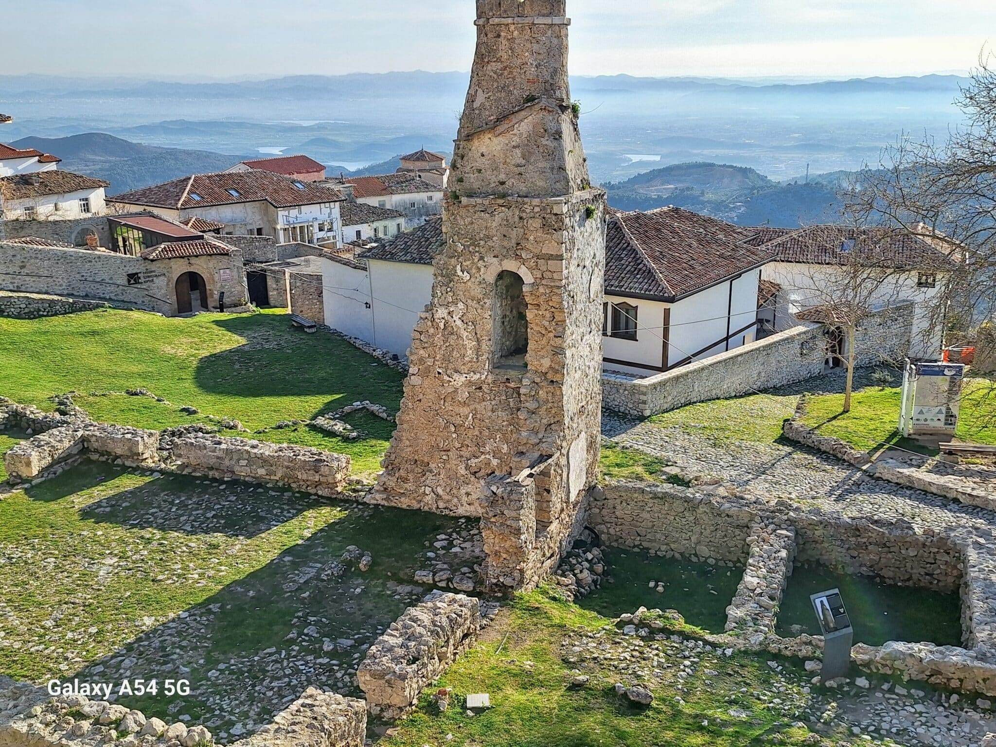 On poursuit notre découverte de l’Albanie et on s’arrête 3 jours à Krujë au camping kruja vista au milieu des oliviers. Un endroit sympathique avec une belle vue et un très bon accueil. Nous profitons de faire notre lessive puis nous partons à la découverte de cette petite ville à flan de colline. Nous allons jusqu’au château ( sans visiter l’intérieur , pas possible avec notre petit chien) promenade dans les jardins puis un tour au bazar qui est la principale attraction pour les touristes . Le lendemain nous décidons d’aller au sommet de la crête par une route sinueuse et impressionnante. Au sommet une vue à couper le souffle, nous n’osons pas trop s’approcher du bord , cela nous donne le vertige🤪