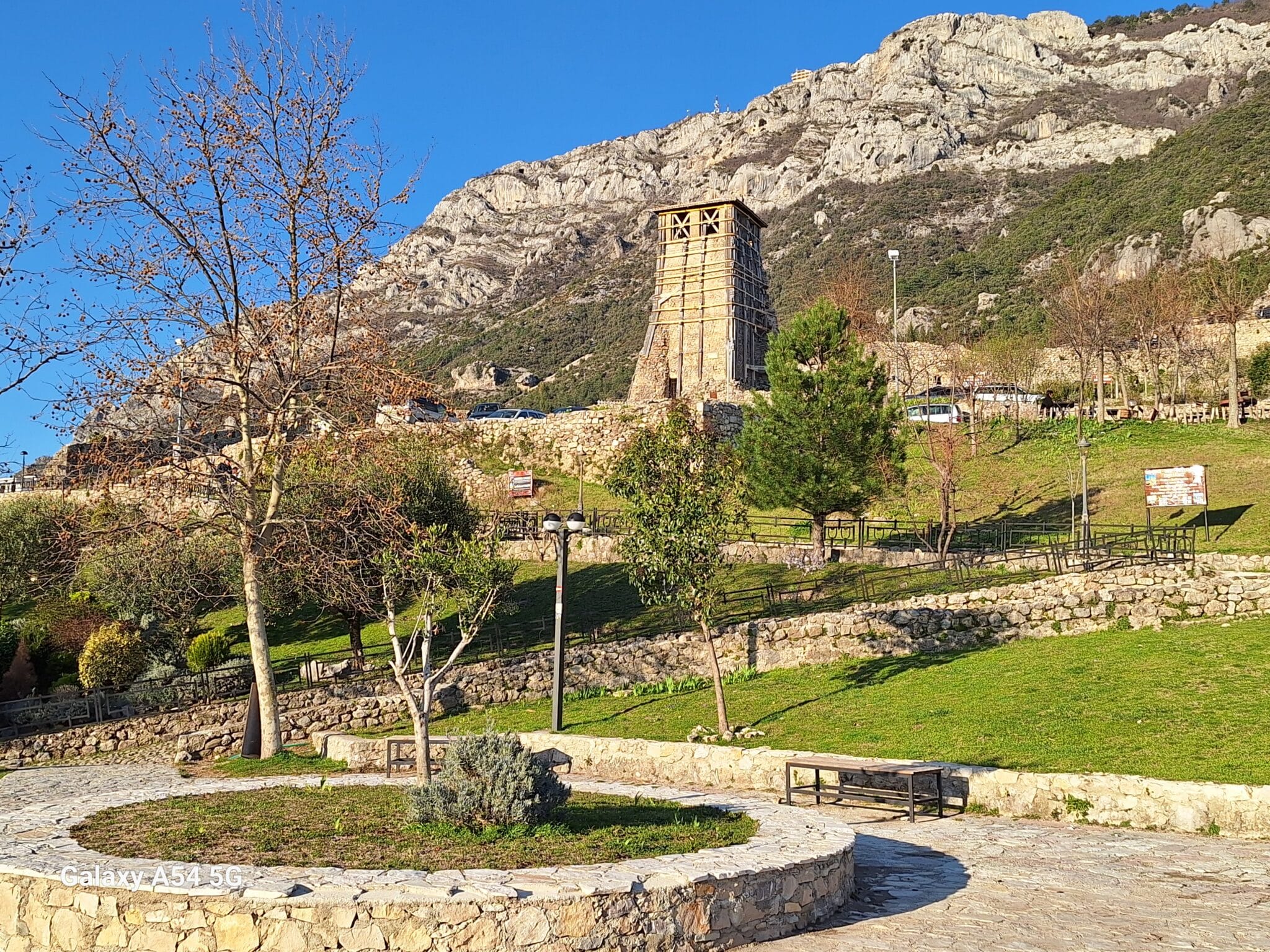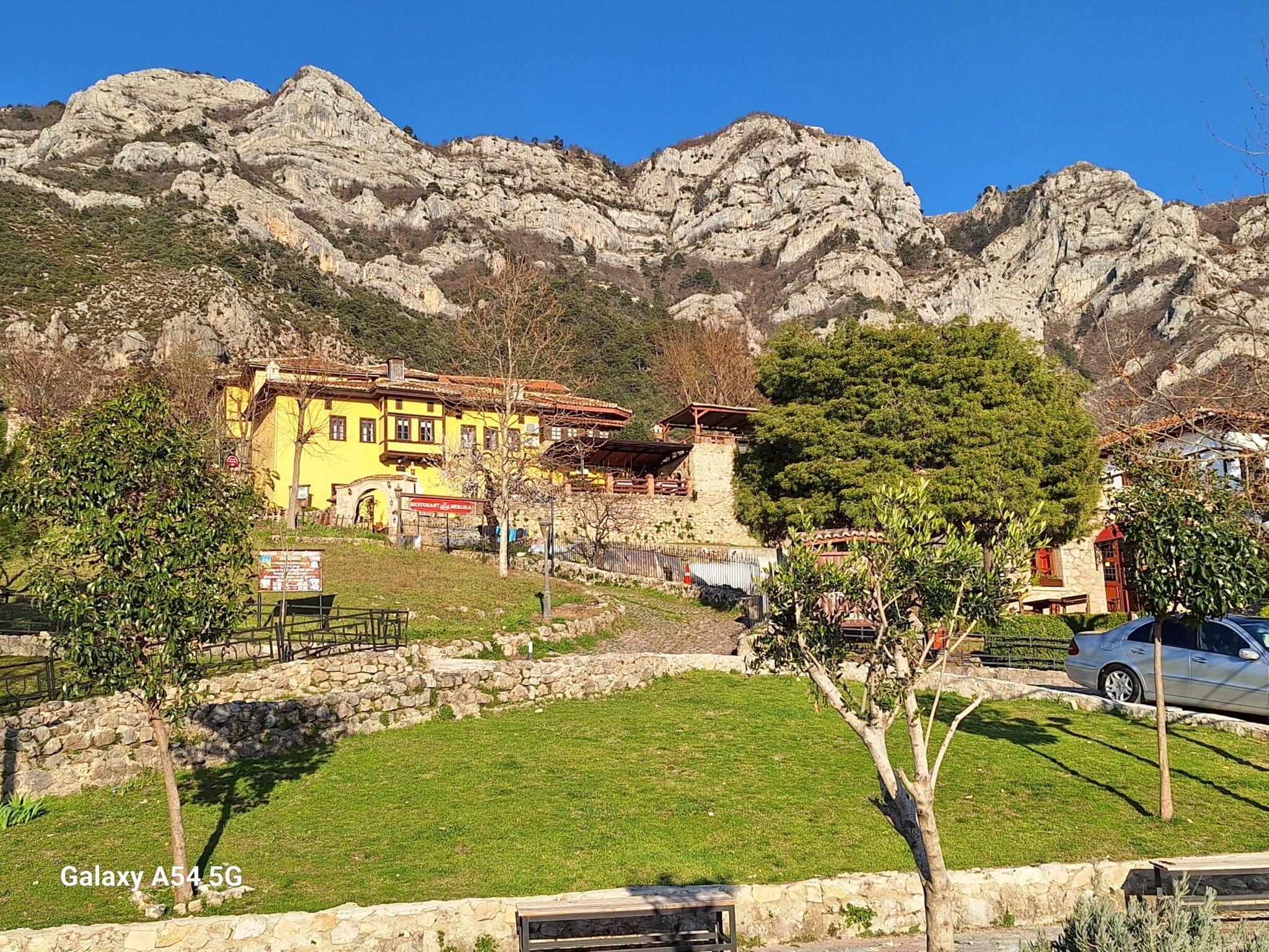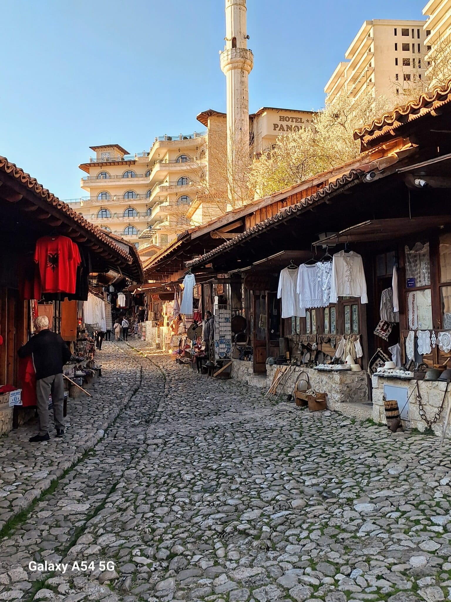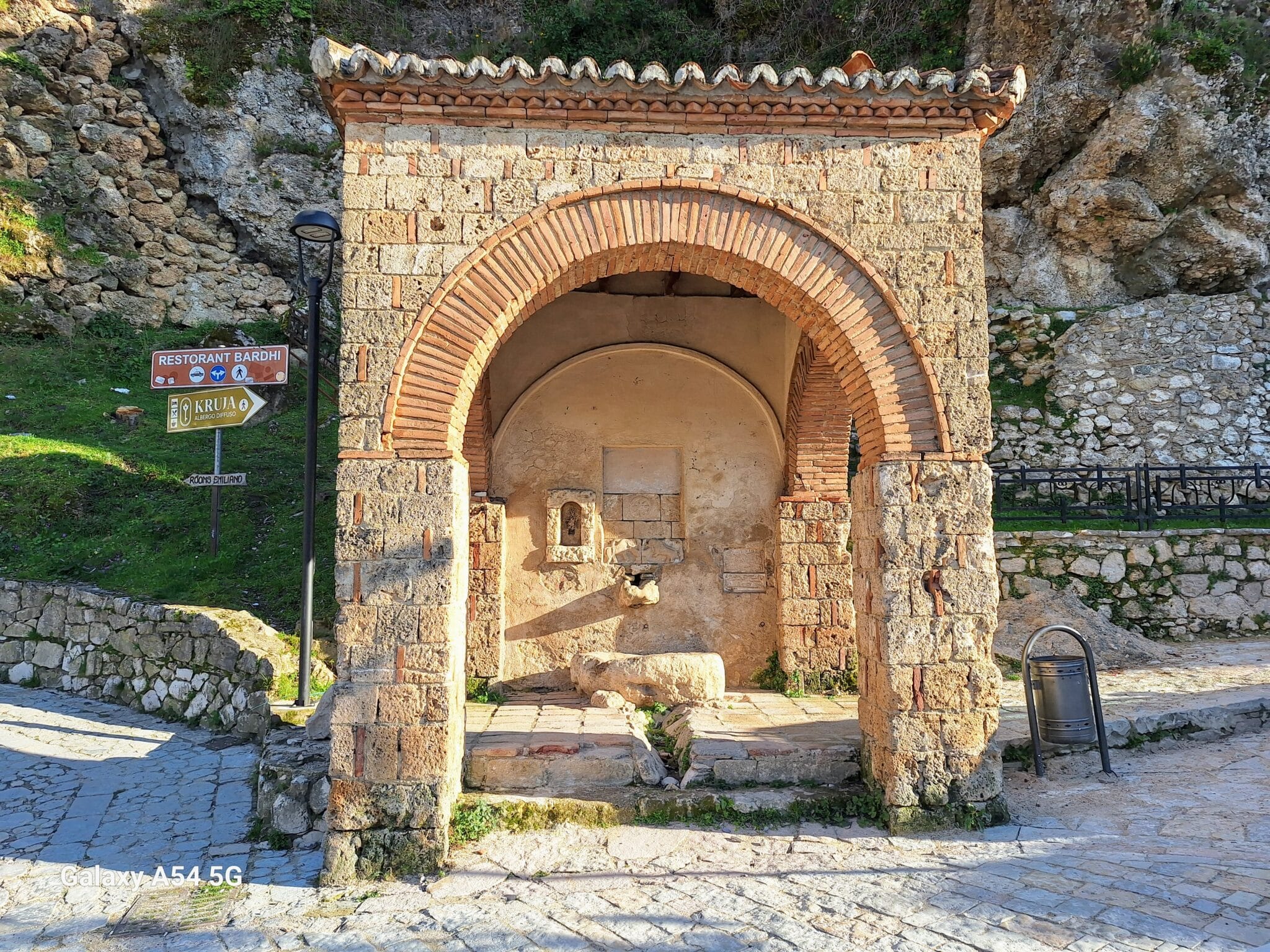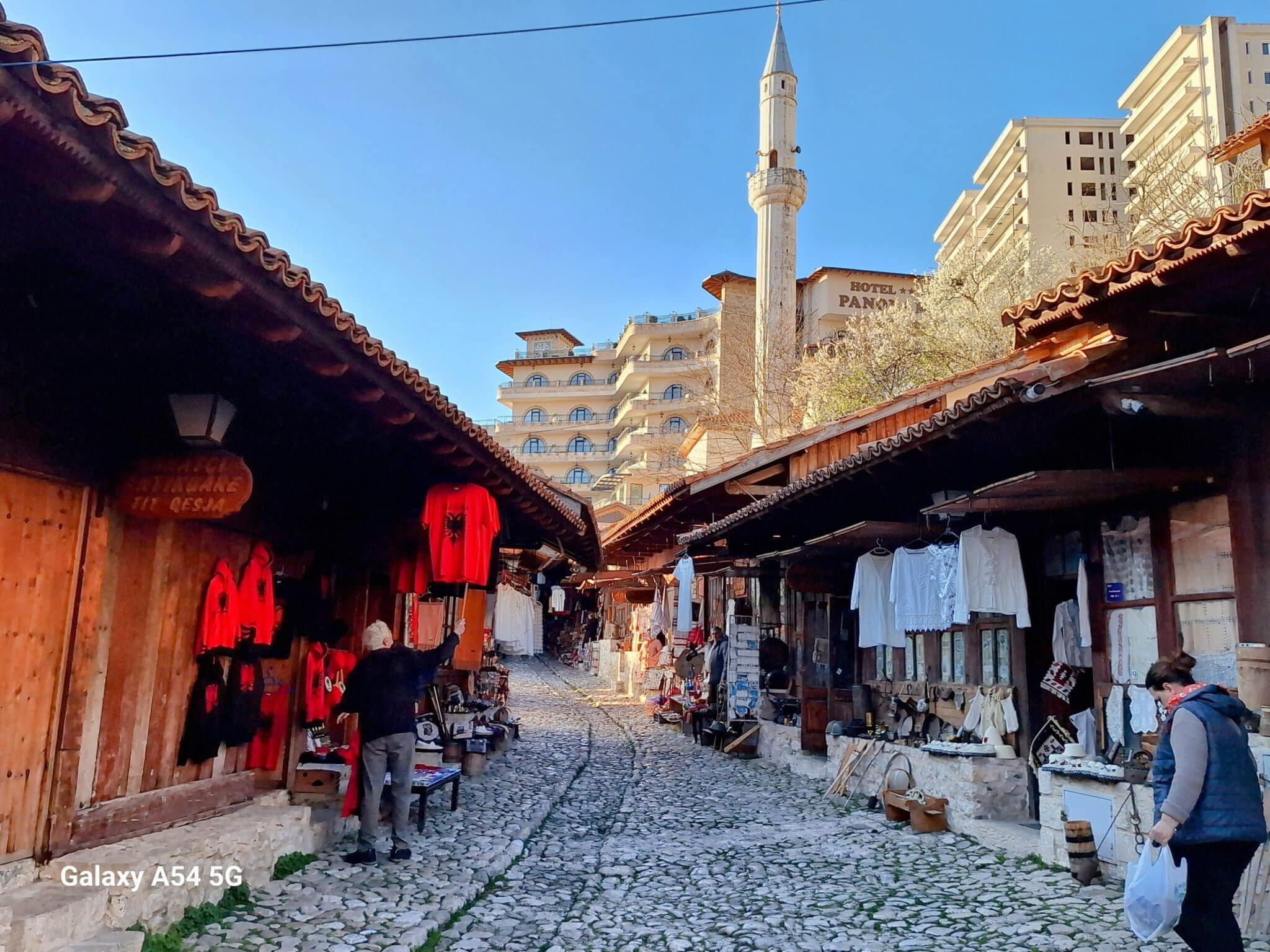 On poursuit notre découverte de l’Albanie et on s’arrête 3 jours à Krujë au camping kruja vista au milieu des oliviers. Un endroit sympathique avec une belle vue et un très bon accueil. Nous profitons de faire notre lessive puis nous partons à la découverte de cette petite ville à flan de colline. Nous allons jusqu’au château ( sans visiter l’intérieur , pas possible avec notre petit chien) promenade dans les jardins puis un tour au bazar qui est la principale attraction pour les touristes . Le lendemain nous décidons d’aller au sommet de la crête par une route sinueuse et impressionnante. Au sommet une vue à couper le souffle, nous n’osons pas trop s’approcher du bord , cela nous donne le vertige🤪