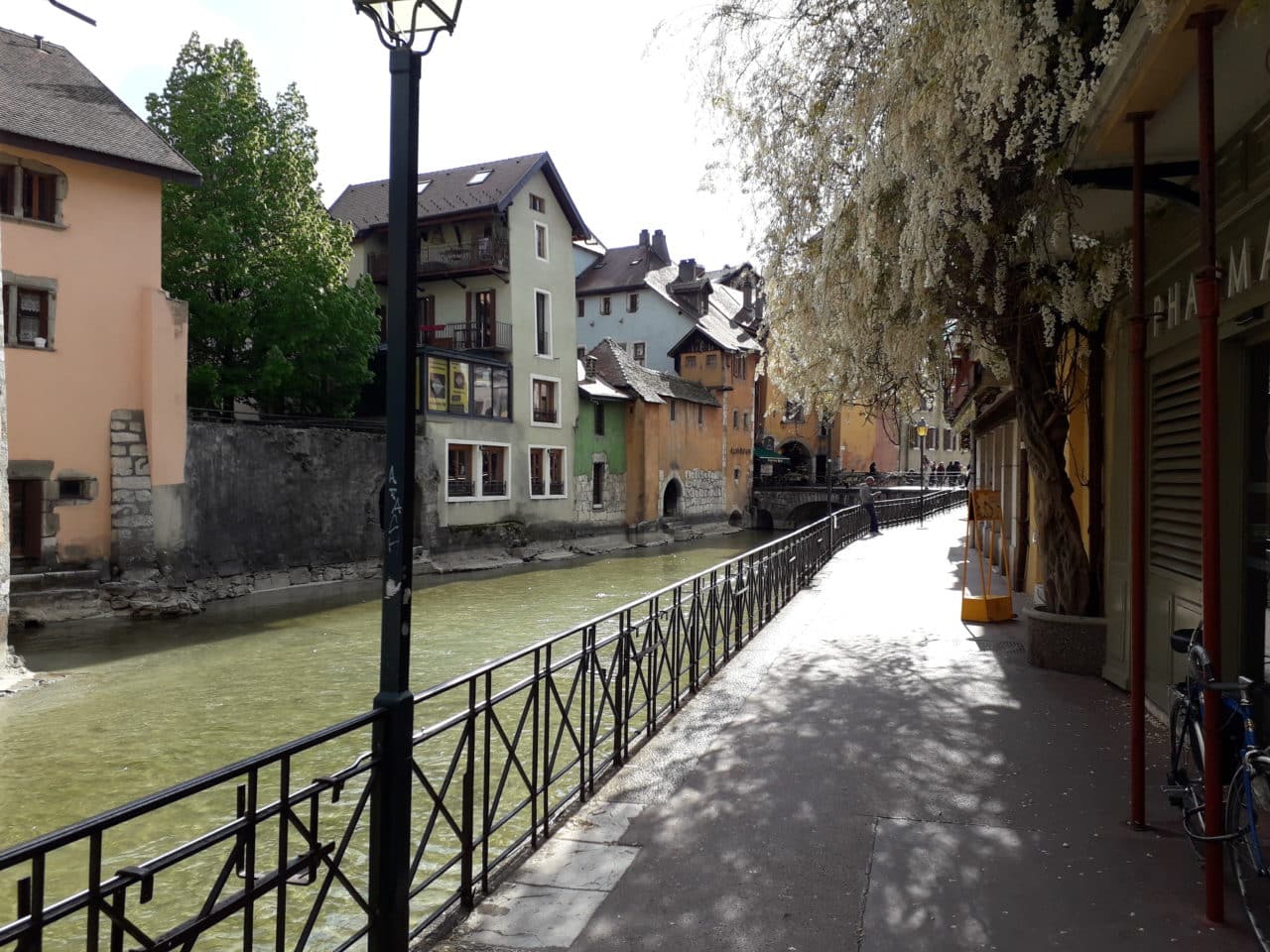 Mardi 23 avril nous repartons pour les alpes de Haute Provence. Nous nous arrêtons pour la nuit à Sassenage près de Grenoble. Au matin nous continuons jusqu’à Forcalquier ou il y a une jolie place de camping car.Un petit tour en ville et le lendemain nous rejoignons des amis camping-caristes rencontrés lors de notre tour d’Espagne et qui habitent la belle région de haute Provence. Ils nous font découvrir de beaux villages e particulièrement la Fontaine de Vaucluse. Dimanche 28 avril nous continuons pour le bord de mer à Carro ( merci Guy pour nous avoir donné l’adresse). un endroit merveilleux, une place de camping car au bord de l’eau. Dommage le mistral c’est levé , il souffle tellement qu’après 2 jours nous repartons direction Avignon et Orange. Le 3 mai nous sommes à Tournon sur Rhône et le 5 mai nous allons à Pont en Royan. La place de camping car en bord de rivière, un village magnifique, endroit calme et reposant. Notre dernier arrêt avant le retour à la maison est Annecy, comme il n’est pas facile de trouver une place dans cette ville nous stationnons à l’aire de Doussard qui vient juste d’ouvrir. Pour se rendre à Annecy, il y a de très belles pistes cyclables.