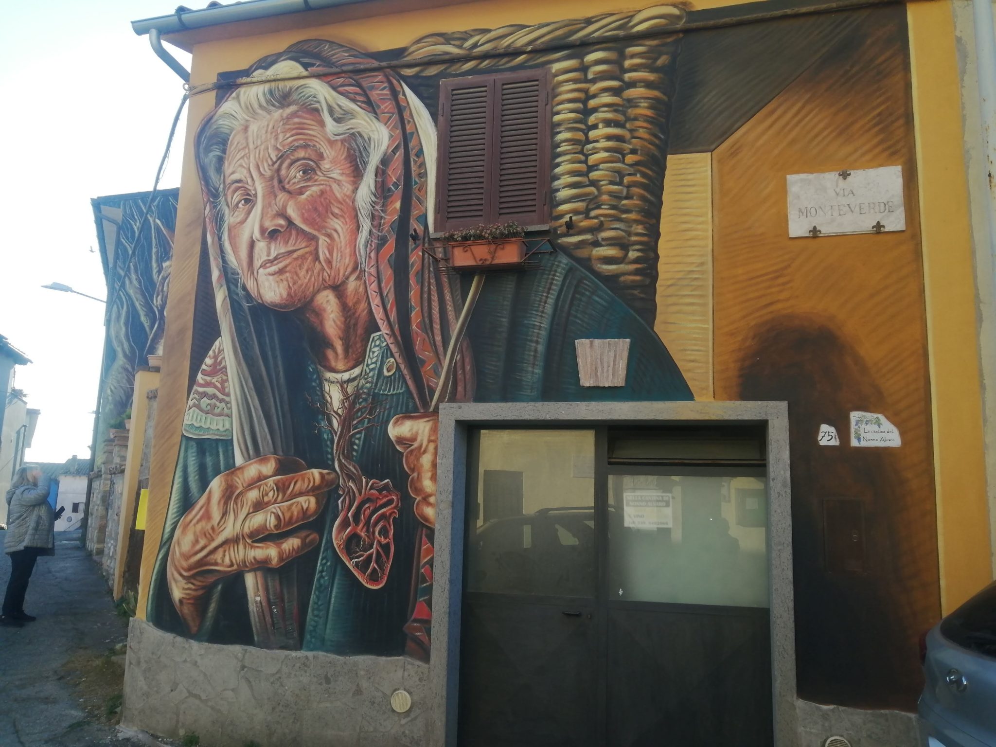 Sant Angelo le village aux peintures de conte de fées. Nous nous promenons au fil des rues à la découverte de chaque nouvelle fresque. Ce village a faillit tomber dans l’oubli suite au départ des jeunes du village mais l’idée de faire un musée à ciel ouvert a redonné vie à cette endroit. Une idée magnifique et c’est amusant de voir à chaque coin de rue de nouvelles peintures.