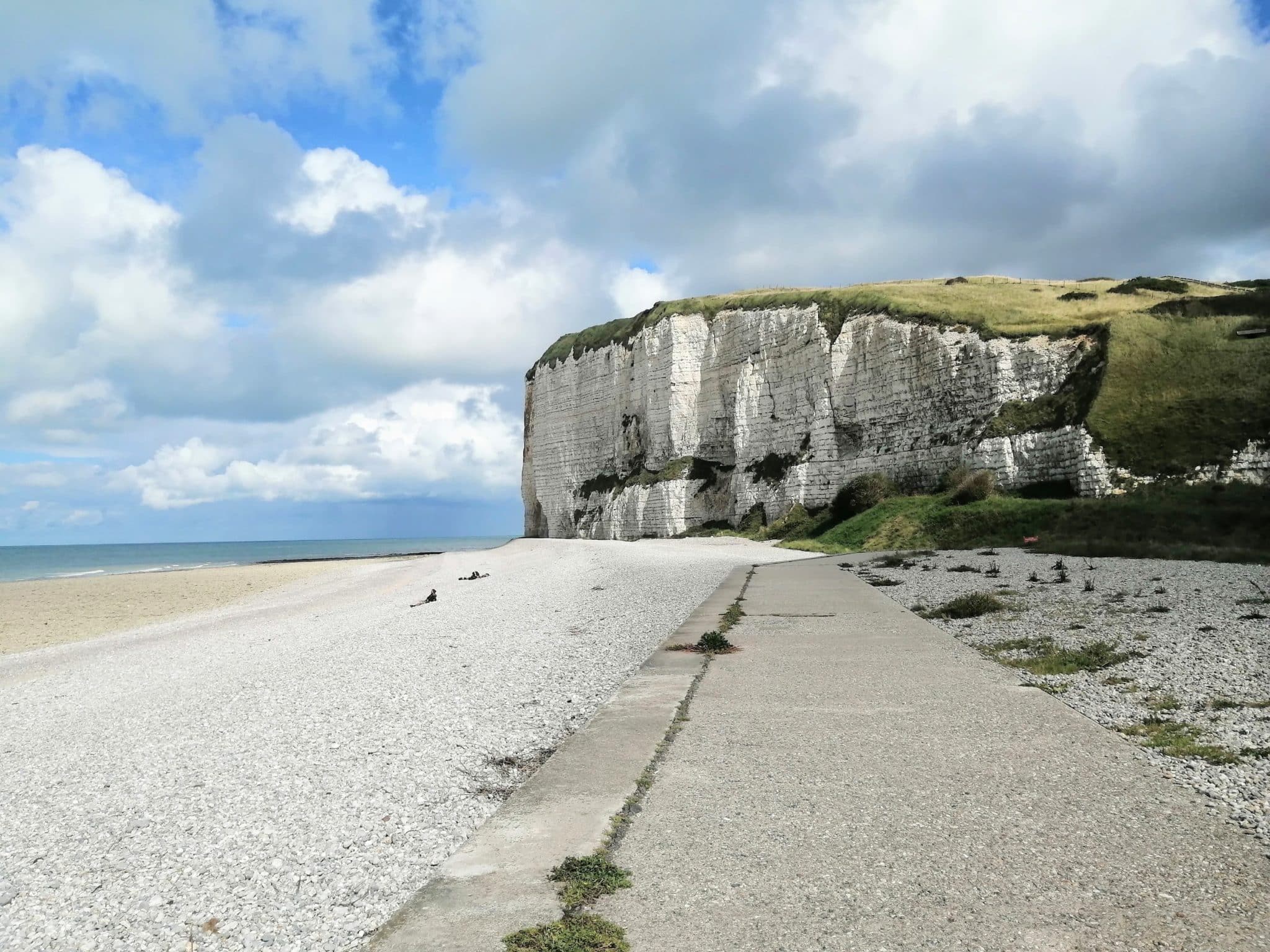Nous faisons un arrêt à Veulettes-sur-Mer charmant village. Dans les champs des vaches broutent l’herbe et en face la mer avec des baigneurs et surfeurs. On se ballade dans les rues , on admire les belles demeures, puis nous nous rendons au site de Pont Rouge sur la colline en suivant un parcours sur un sentier où se trouve de nombreux bunkers de la 2 eme guerre mondiale afin de se souvenir de cette triste époque. Émouvant.